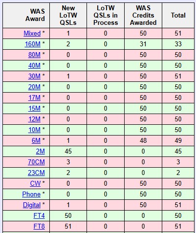 * = WAS Has Been Awarded 10 Bands, 160 though 6 Meters